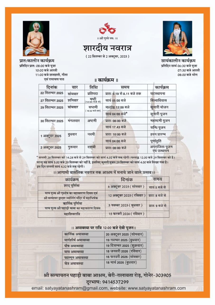 | 1 | Pahari Baba's Mahanirvan Diwas | Aashadh Shukla Shashthi | -- | Shree Guru Narayan Sewa |